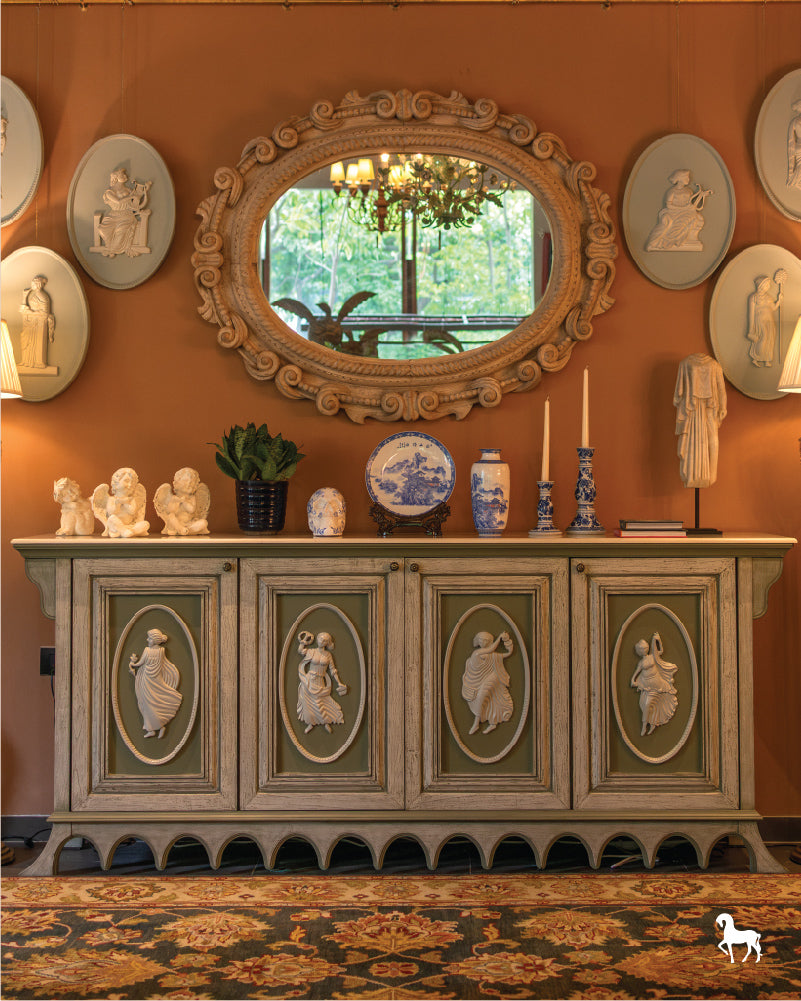 Greco-Roman Cabinet with Hand Carved Sculptures